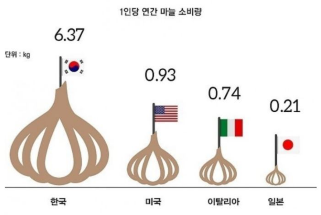 한국은 1인당 연간 마늘 소비량 전세계